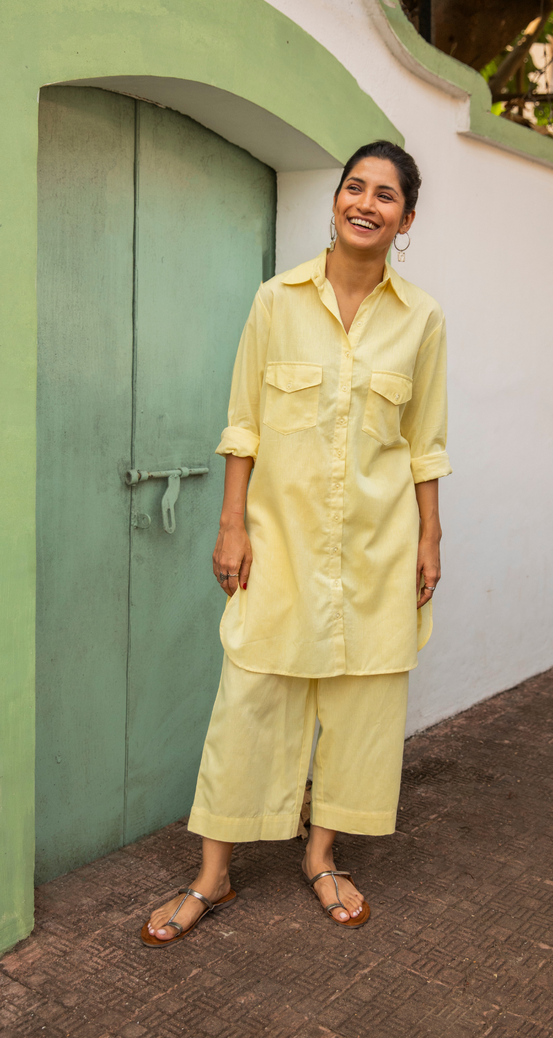 Bougainvillea Kurta Set in Butter Yellow