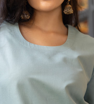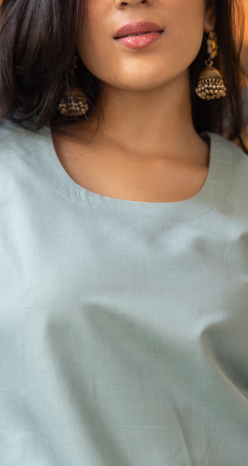 Fairy Lights Kurta Set in Sea Green & Pink